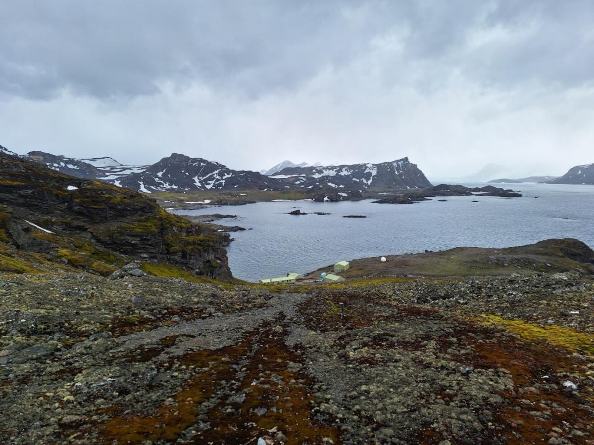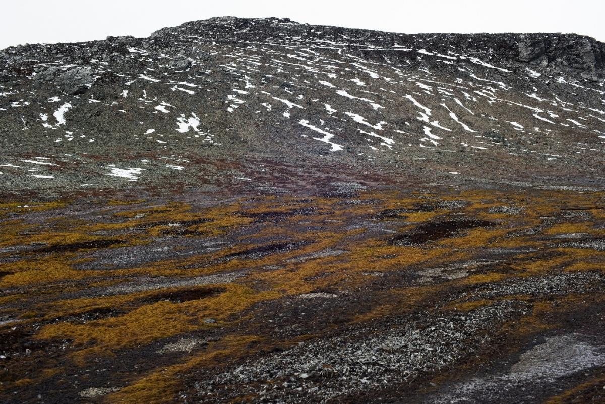 Figure 2. A photo of the ‘Backslope’ near the British Antarctic Survey’s Signy Research Station, with a mixture of moss and lichen vegetation. Photo taken by Peter Convey.