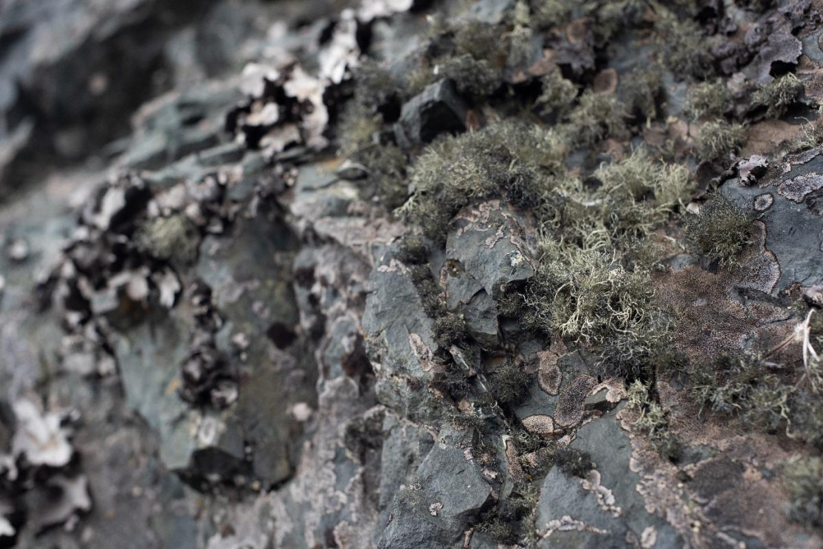 Figure 5 Photo of a variety of lichen species with Usnea antarctica in the foreground.